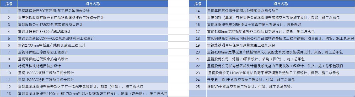 公司诞生于百年重钢,重钢的前身是1890年湖广总督张之洞创办的汉阳铁厂;1938年,汉阳铁厂西迁重庆大渡口;2006年重钢启动环保搬迁工程,由重庆市大渡口区搬迁到长寿区。公司承担了重钢及其他钢铁企业的烧结、炼铁、炼钢、轧钢、钢铁公辅等数百个钢铁技术改造项目。